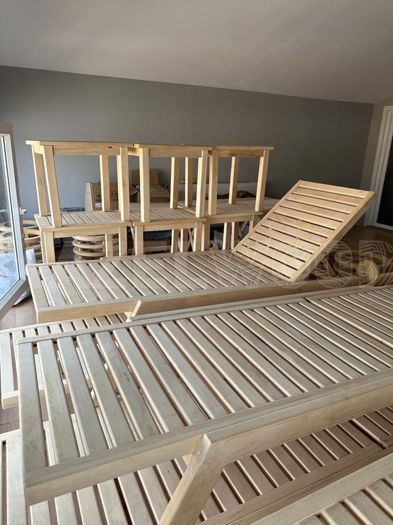 Ahşap şezlonglar, rahatlamak ve güneşlenmek için kullanılan açık hava mobilyalarıdır. Genellikle bahçe, teras, havuz kenarı gibi dış mekanlarda kullanılırlar. Ahşap şezlonglar, estetik görünümleri ve doğal malzeme tercihi nedeniyle dış mekanların güzellik ve konforunu artırmak için tercih edilir. Ahşap şezlonglar, doğal güzellikleri ve estetikleri ile açık hava alanlarını daha konforlu ve davetkar hale getirir. Herhangi bir dış mekan alanında dinlenmek, güneşlenmek veya kitap okumak için tercih edilen popüler mobilya parçalarından biridir.